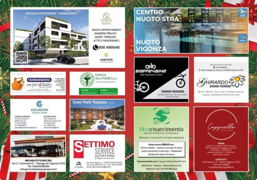 Un ringraziamento di cuore a tutti i nostri SPONSOR. Grazie al loro contributo e a quello dell’ amministrazione comunale anche quest’ anno a STRA festeggeremo un SUPER NATALE!!! Vi aspettiamo SABATO 20 DICEMBRE in Piazza Marconi dalle ore 15.00 per scambiarci gli auguri di Natale.