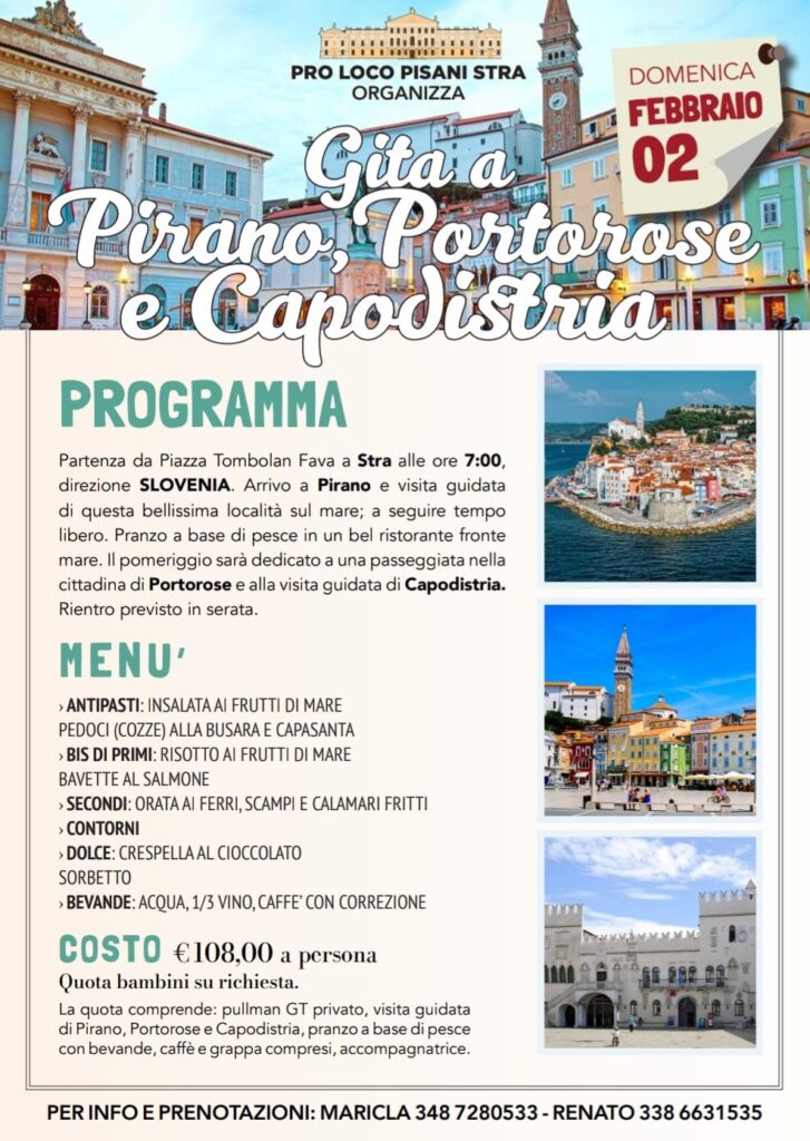 Per gli spostamenti utilizziamo bus gran turismo con partenza ed arrivo sempre da Stra oppure voli aerei dall’ aeroporto di Venezia.
